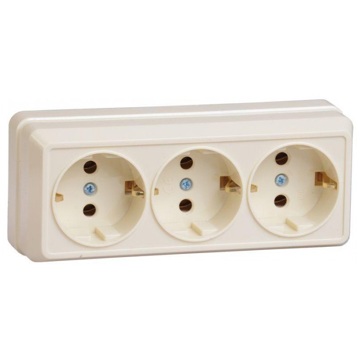 Розетка 3-м ОП Октава РС23-3-ОК 16А IP20 с заземл. крем. IEK ERO31-K33-16-DC