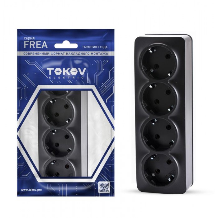 Розетка 4-м ОП Frea 16А IP20 250В с заземл. АБС-пластик карбон TOKOV ELECTRIC TKE-FR-R4Z-C14 1792431...
