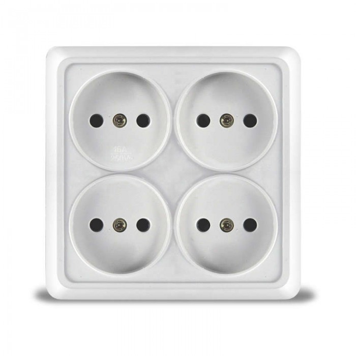 Розетка 4-м ОП Олимп 16А IP20 квадрат. без заземл. бел. UNIVersal 1164