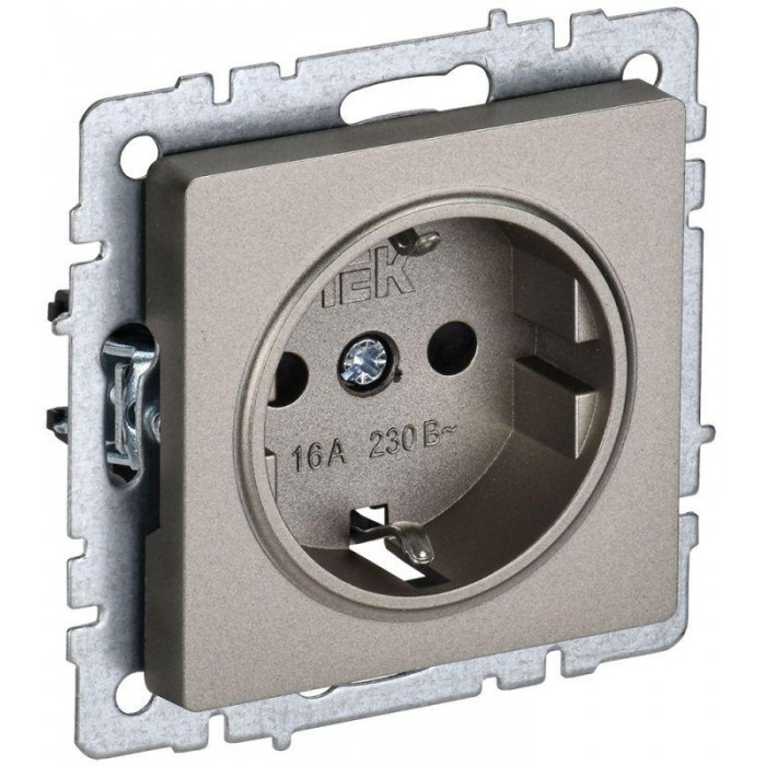 Розетка BRITE РС11-1-0-БрШ 16А с заземл. без защ. шторки механизм шампань IEK BR-R11-16-K37