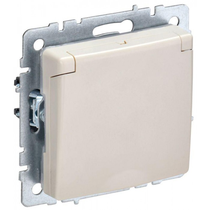 Розетка BRITE РСбш10-3-БрКр 16А IP20 с заземл. защ. шторки с крышкой механизм беж. IEK BR-R16-16-K10