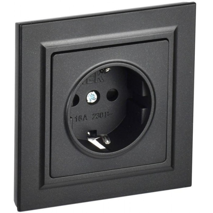 Розетка СП BRITE РСР14-1-0-БрЧ 16А в сборе с заземл. защ. шторки черн. IEK BR-R14-16-K02-F