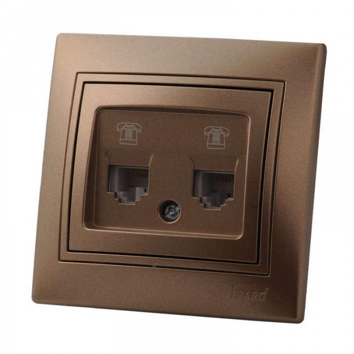 Розетка телефонная 2-м СП Mira RJ11 16А IP20 евро стандарт со вставкой свет. корич. перламутр. LEZARD 701-3131-138