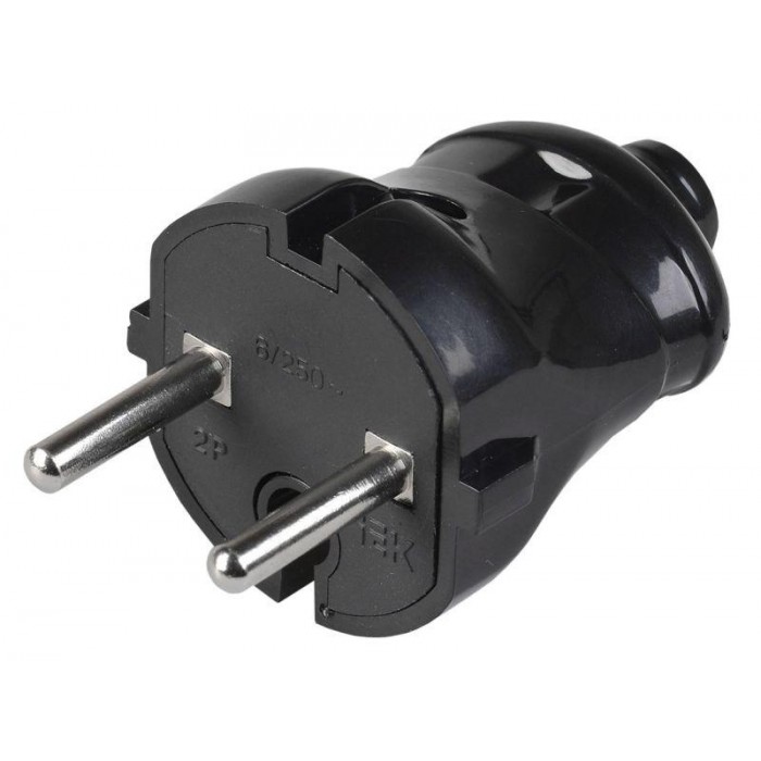 Вилка прямая ВПп20-02-Ст разборная без заземл. контакта 6А черн. IEK EVP20-06-01-K02