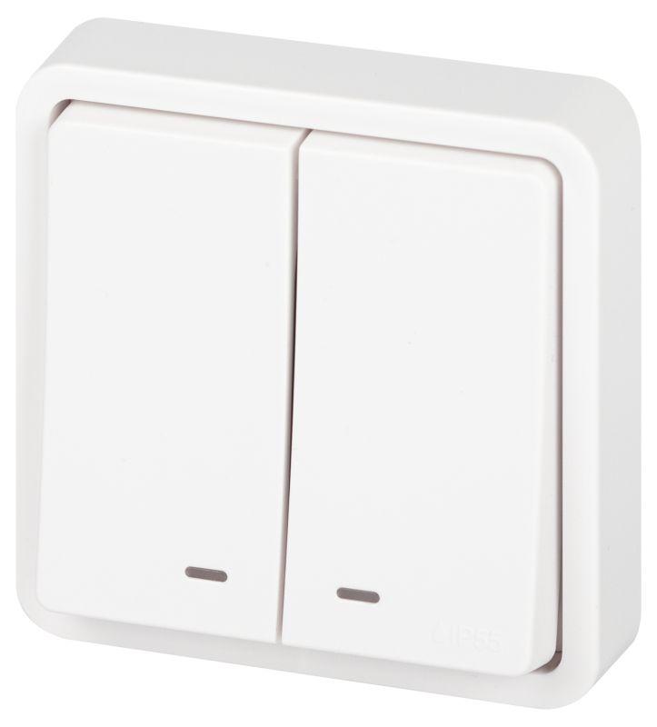 Выключатель влагозащищённый 2-клавишный с подсветкой серии Эра Эксперт накладн IP55 цвет белый 11-15..