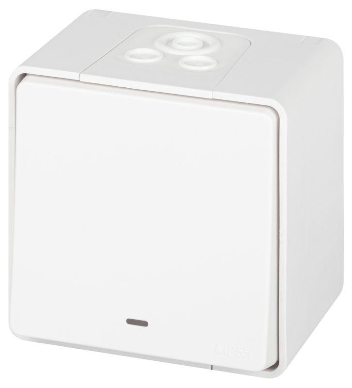 Выключатель влагозащищённый 1-клавишный с подсветкой серии Эра Эксперт накладн IP55 цвет белый 11-15..