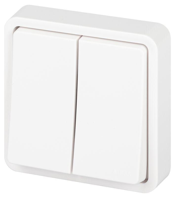 Выключатель влагозащищённый 2-клавишный серии Эра Эксперт накладной IP55 цвет белый 11-1524-01 скрыт..