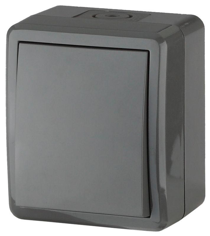 Переключатель 1-клавишный серии Эра Эксперт открытой установки цвет серый 11-1403-03. Номинальные ха..