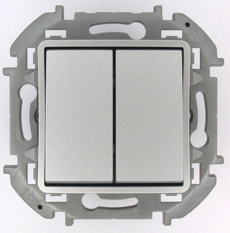 Переключатель модульный двухклавишный с подсветкой Inspiria для скрытого монтажа, цвет "Алюминий", н..