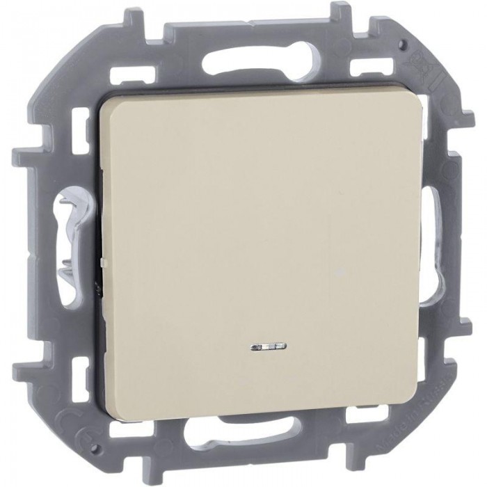 Переключатель одноклавишный с подсветкой/индикацией скрытого монтажа Inspiria, цвет "Слоновая кость", номинальный ток 10АХ, напряжение ~250В, безвинтовые зажимы. Устанавливается в жилых и общественных помещениях для упра...