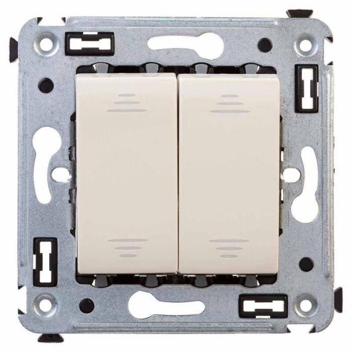 Задача двухклавишного переключателя – управление двумя контурами освещения из двух точек. Он позволяет включить/выключить свет из удобной точки – например, в спальне переключатель может размещаться возле кровати. Переключатель предназначен для скрытого монтажа в стену. Номинальное напряжение – 230 В, номинальный ток – 16 А. Материал: металл, термопласт. Цветовое решение пластиковых элементов – "Ванильная дымка". Это теплый, уютный оттенок бежевого. Для декоративного оформления может быть подобрана рамка "в цвет" или же контрастного оттенка. Лучше всего изделие сочетается со светлыми и пастельными оттенками. Производитель оставляет за собой право вносить во внешний вид изделия изменения, которые не влияют на его функционал, безопасность и надежность.