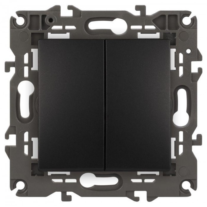 Выключатель 2-клавишный проходной Эра Elegance антрацит 14-1106-05. Оснащён автоматическими клеммами для надёжной фиксации жил кабеля в механизме. Рамки приобретаются отдельно.