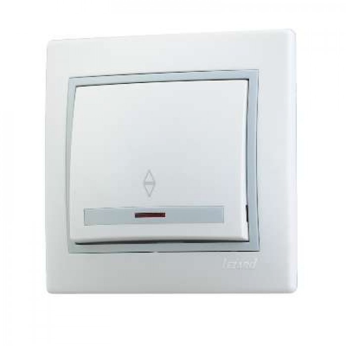 Переключатель проходной 1-кл. СП Mira 10А с подсветкой с сер. вставкой бел. LEZARD 701-0215-114 221698...