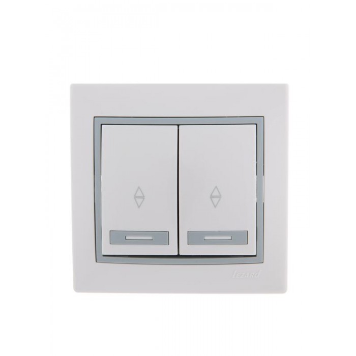 Переключатель проходной 2-кл. СП Mira 10А с сер. вставкой бел. LEZARD 701-0215-106