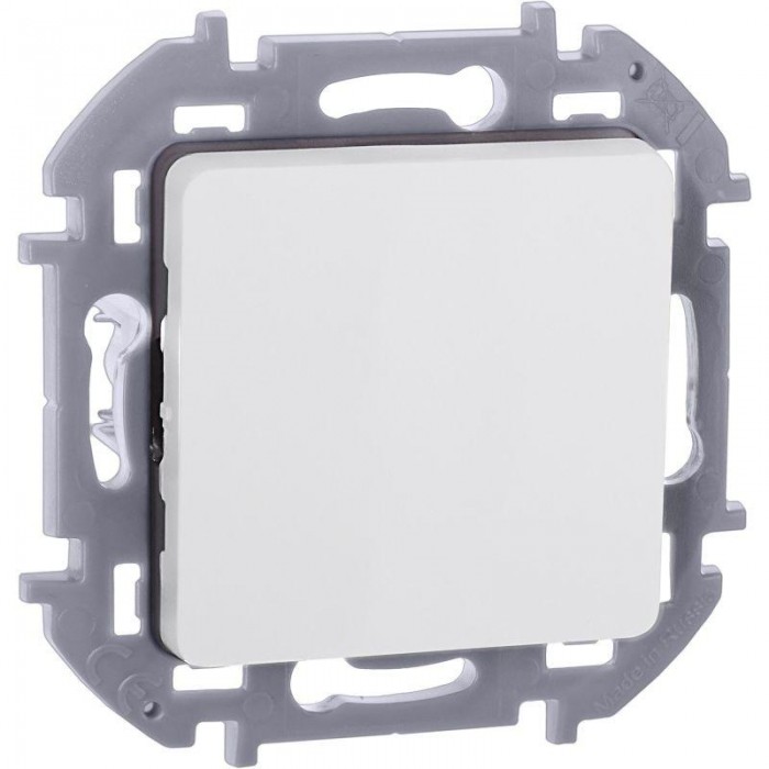 Выключатель одноклавишный скрытого монтажа Inspiria, цвет "Белый", номинальный ток 10АХ, напряжение ~250В, безвинтовые зажимы. Устанавливается в жилых и общественных помещениях для управления приборами освещения, вентиляции и т.д.