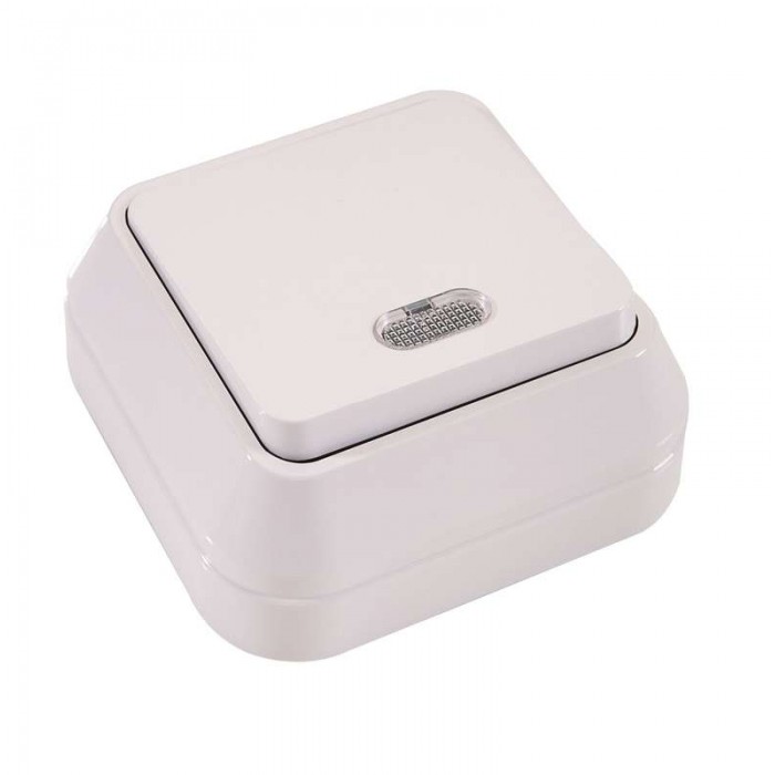 Выключатель 1-кл. ОП 10А IP20 с подсветкой бел. Makel 45121