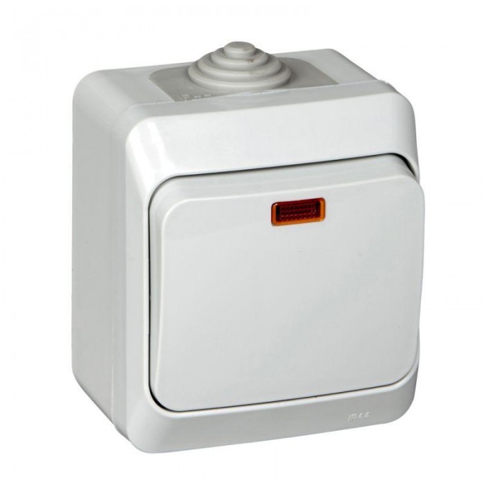 Выключатель Systeme Electric (ранее Schneider Electric) ЭТЮД (серый, открытой установки) одноклавишный, с подсветкой и предназначен для применения в сетях до 250В, на ток до 10А, что делает его легко находимым при отсутствии освещения. Он удобен в применении и отлично подходит для ванной комнаты (IP44). Сделано в России.