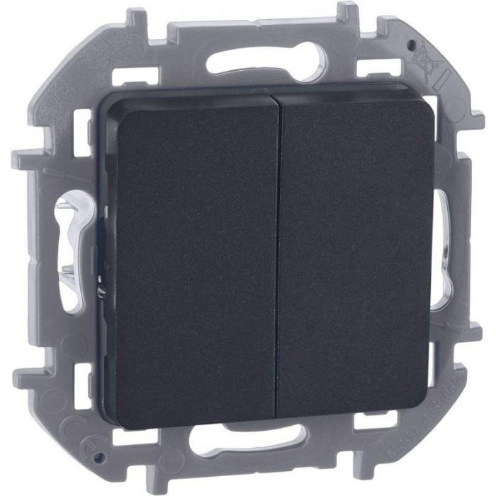 Выключатель двухклавишный скрытого монтажа Inspiria, цвет "Антрацит", номинальный ток 10АХ, напряжение ~250В, безвинтовые зажимы. Устанавливается в жилых и общественных помещениях для управления приборами освещения, вент...