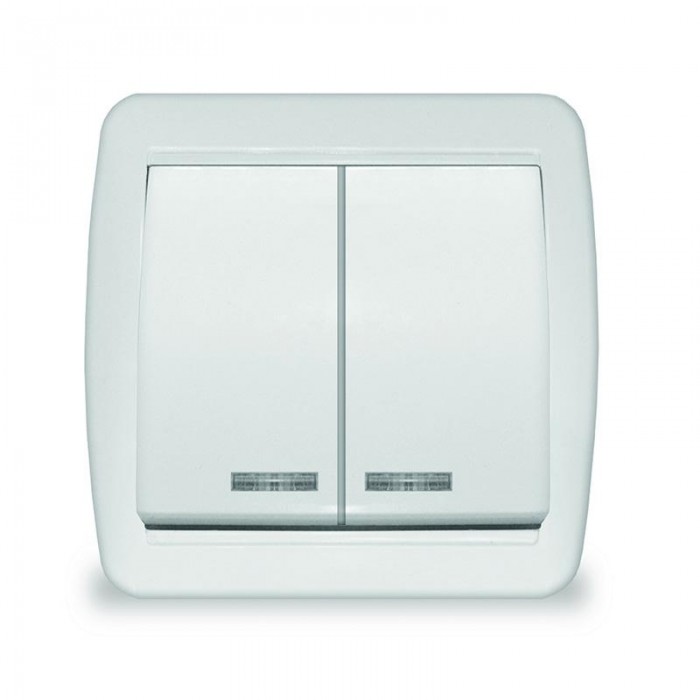 Выключатель 2-кл. ОП Клио с подсветкой 10А IP44 бел. UNIVersal К2227