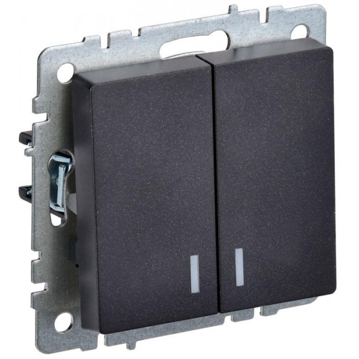 Выключатель 2-кл. СП BRITE ВС10-2-1-БрЧ 10А с индик. механизм черн. IEK BR-V20-1-10-K02