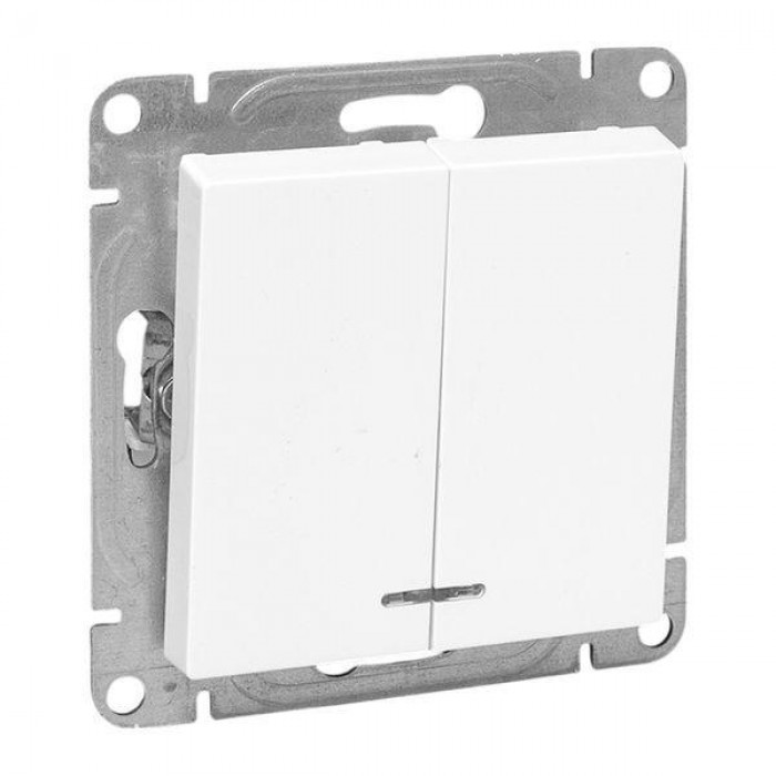 Выключатель 2-кл. СП Эпика с подсветкой механизм бел. EKF UP1-SWW-24