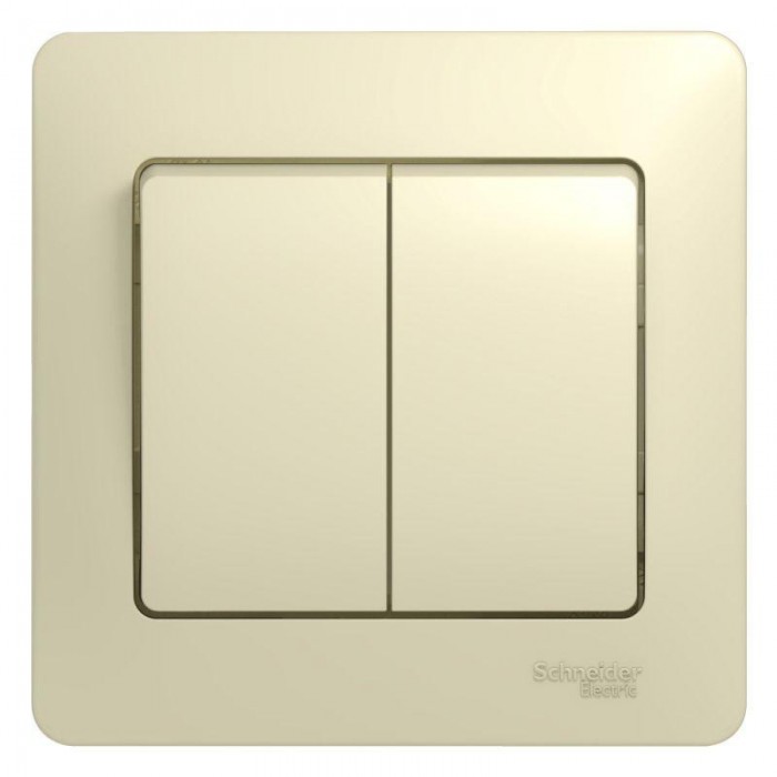 Выключатель Systeme Electric (ранее Schneider Electric) серии Glossa (в сборе, цвет бежевый) двухклавишный подходит для сетей 250 В, на ток 10 А. - Двухклавишный выключатель позволяет управлять двумя источниками света с одной точки. - Выполнен из материала PС+ASA, стойкого к УФ-излучению и появлению царапин. - Эргономичные клеммы расположены в два ряда: сверху и снизу.
