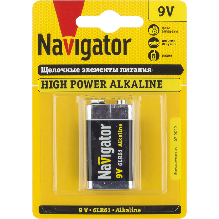 Элемент питания алкалиновый "крона" 6LR61 94 756 NBT-NE-6LR61-BP1 (блист.1шт) Navigator 94756