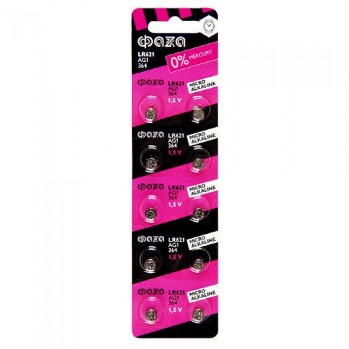 Элемент питания алкалиновый "таблетка" LR60/LR621/AG1/G1 1.5В BL-10 (уп.10шт) ФАZА 5002463