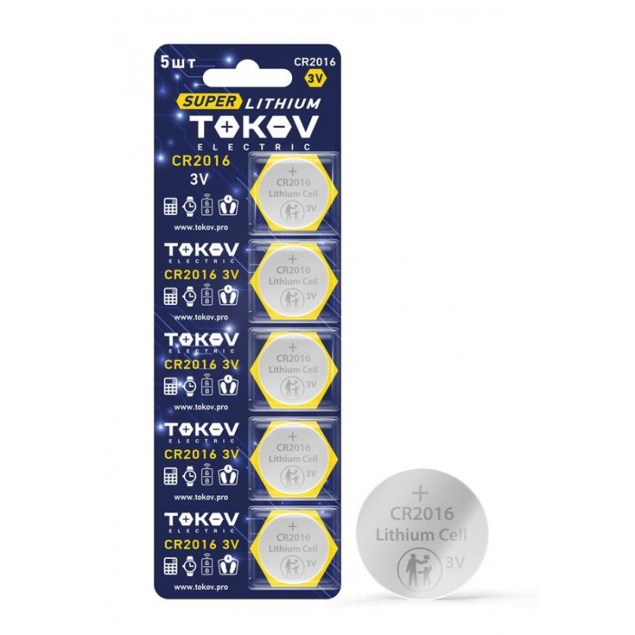 Элемент питания литиевый CR2016 таблетка (блистер 5шт) TOKOV ELECTRIC TKE-LI-CR2016/B5 1754904