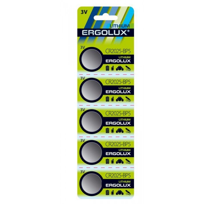 Дисковые литиевые батарейки Ergolux предназначены для широкого спектра устройств (датчики, сенсоры, часы, весы, калькуляторы, брелоки). Батарейка Ergolux CR2025-BP5 литиевая, напряжение 3В, емкость 150мА*ч, кол-во в упак...