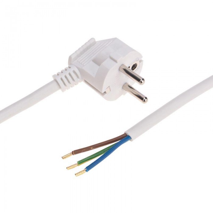 Электрический шнур предназначен для подключения бытовых приборов и осветительной техники к сети. Используется при ремонте или замене штатного шнура питания. Жилы изготовлены из меди, что обеспечивает высокую токопроводимость. Заземление обеспечивает защиту от электрического замыкания и повышает безопасность использования. Литая неразборная вилка евростандарта гарантирует стабильное подключение и надежную фиксацию в розетке. Угловая форма вилки облегчает подключение в ограниченном пространстве и уменьшает износ кабеля. Шнур имеет зачищенные контакты, что экономит время и упрощает процесс подключения.