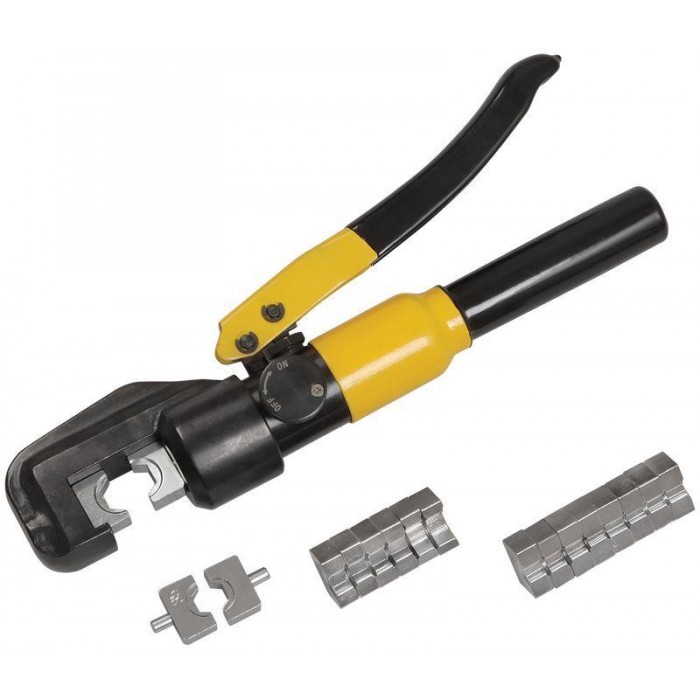 Гидравлические прессы позволяют создавать механические соединения типа кабельная жила-гильза или кабельная жила-наконечник с помощью механической опрессовки. Прессы снабжены сменными матрицами, предназначенными для различных сечений жил. Гидравлические прессы значительно облегчают процесс опрессовки так как требуют применения меньших усилий, чем механические прессы.