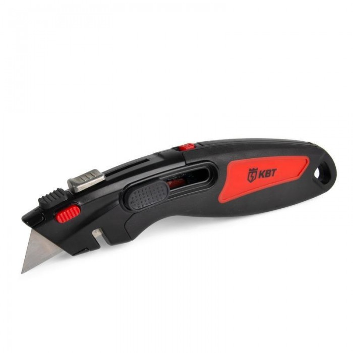 • Предназначен для резки тонких строительных материалов (бумага, картон, пластик, резина и т.д.) • Выдвижное двустороннее трапециевидное лезвие с функциями фиксации и автовозврата • В конструкции ножа предусмотрен стропо...