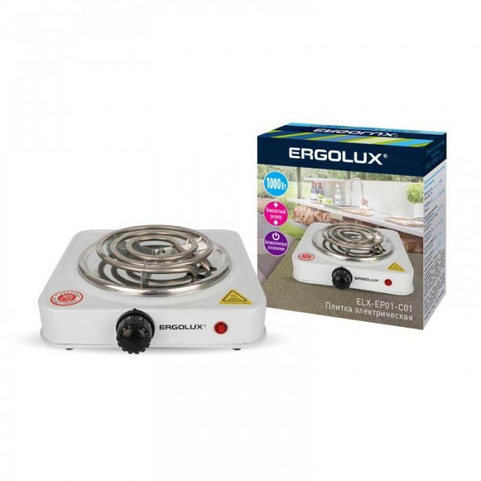Электроплитка ELX-EP01-C01 1 конф. спиральный нагр. эл. 1000Вт 220-240В бел. Ergolux 13436