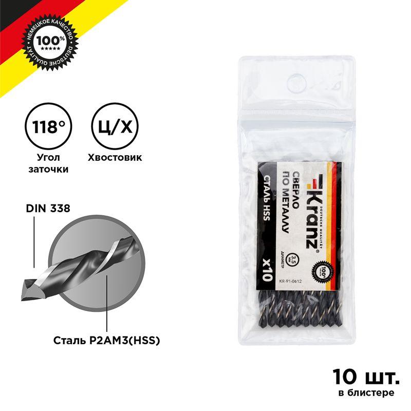 Сверло по металлу KRANZ изготовлено по стандарту DIN 338 и используется для сверления отверстий в та..