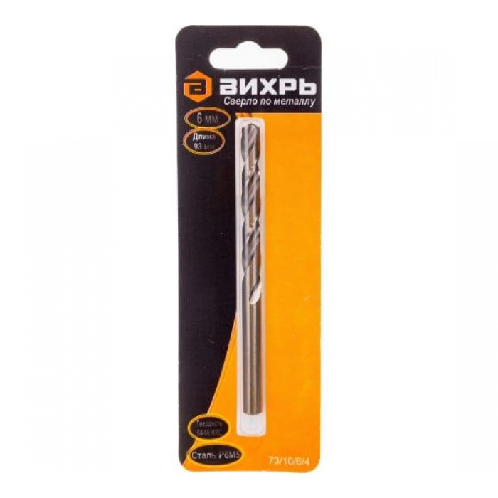 Сверло по металлу 6мм P6M5 (блист.1шт) Вихрь 73/10/6/4
