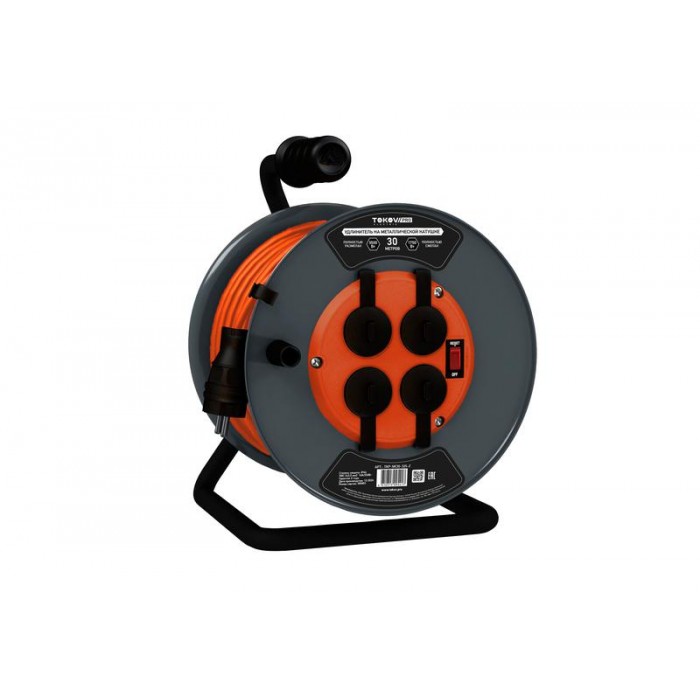 Удлинитель на метал. катушке 4х30м с заземл.16А IP44 ПВС 3х2.5 с выкл. медь TOKOV ELECTRIC TKP-SK30-325-Z 1909886