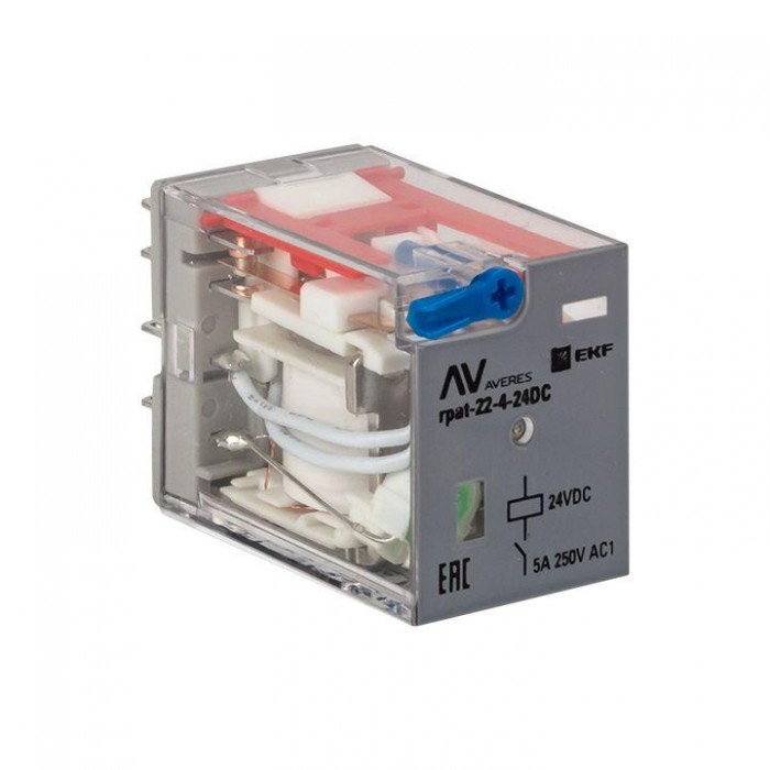 Реле промежуточное RPAt 22/4 5А 24В DC с кнопкой и мех. индикацией AVERES EKF rpat-22-4-24DC