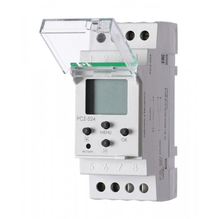 Реле времени астрономическое PCZ-524 24-264В AC/DC 16А 1 переключ. контакт IP20 1 канал F&F EA02.002.004
