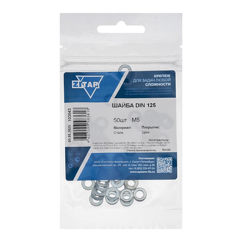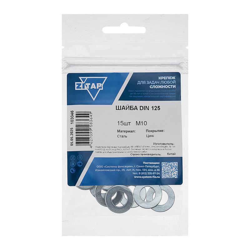 Стандартная плоская шайба DIN 125 для фиксации резьбовых соединений. Представляет собой плоский диск..