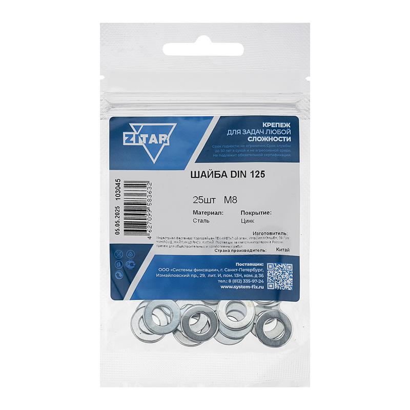 Стандартная плоская шайба DIN 125 для фиксации резьбовых соединений. Представляет собой плоский диск..