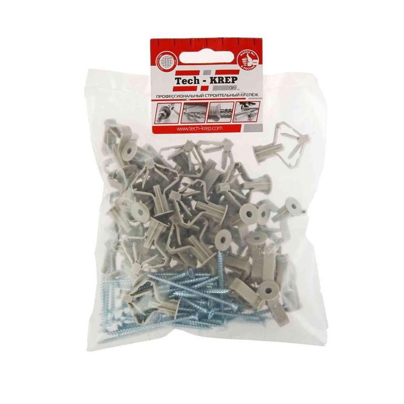 В состав комплекта входят: дюбели для гипсокартона TNF 10,0х50 мм и универсальные саморезы с потайно..