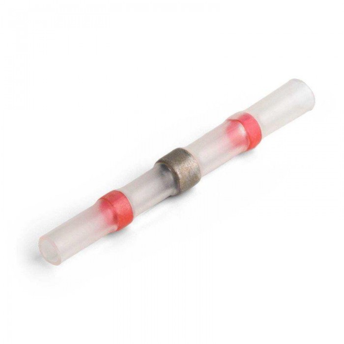 • Предназначены для паяного соединения встык многопроволочных медных проводов. Не требуют использования канифоли для монтажа • Материал изоляции: сшитый полиэтилен. Не содержит галогенов • Термостойкость изоляции: 125 °C • Максимальное напряжение: 690 В • Особенности конструкции: • в центре соединителя расположено кольцо низкотемпературного припоя • по краям соединителя на внутренней поверхности термоусаживаемой трубки интегрированы цветные пояски термоплавкого клея, обеспечивающие полную герметичность соединения после усадки • Прозрачная изоляция обеспечивает визуальный контроль в процессе монтажа • Цвет поясков термоплавкого клея помогает идентифицировать размеры • Порядок монтажа: • разместите соединитель на одном из проводов, сдвинув его в сторону от предварительно зачищенных концов жил • распушите отдельные проводники и соедините концы жил встык таким образом, чтобы концы проводников заходили друг в друга • обожмите руками выступающие проводники, сформировав место стыка • сдвиньте соединитель на место контакта таким образом, чтобы поясок припоя располагался по центру соединяемых зачищенных жил • используя бутановую горелку или высокотемпературный фен, равномерно прогрейте припой со всех сторон до его расплавления • дайте изделию остыть • Инструмент для монтажа: высокотемпературный фен