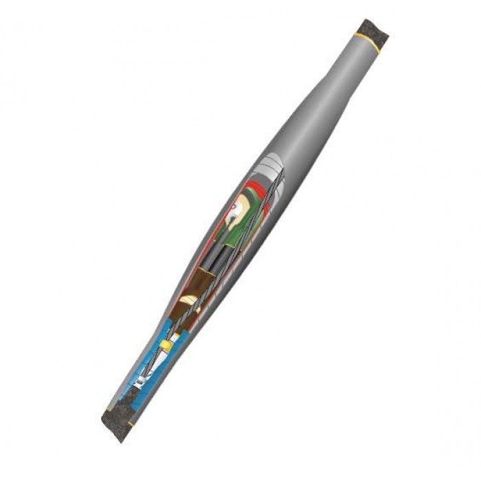 МУФТА СОЕДИНИТЕЛЬНАЯ ТЕРМОУСАЖИВАЕМАЯ МАРКИ 10СТп(тк)-3х(150-240) С СОЕДИНИТЕЛЯМИ БОЛТОВЫМИ предназначена для соединения 3-х жильных силовых кабелей сечением 150, 185, 240 кв.мм с бумажной пропитанной изоляцией на напряжение до 10 кВ включительно. Устанавливается непосредственно в грунте, а также в тоннелях, каналах, коллекторах и других кабельных сооружениях без ограничения по уровню прокладки. Эксплуатируется при температуре окружающей среды от -50град.С до +50град.С и относительной влажности до 98%. Соответствует требованиям ГОСТ 13781.0-86 и ТУ Нева-Транс 3599-012-31930690-2016. Прошла необходимый комплекс независимых испытаний, на основании которых выдан сертификат соответствия Госстандарта России. Монтируется на двух концах соединяемых кабелей методом термоусаживания основных деталей из модифицированного полимера, входящих в комплект муфты, с помощью горелки или высокотемпературного фена. Имеет наружный и внутренний толстостенные термоусаживаемые кожуха с нанесенным на них клеевым слоем, обеспечивающие полноценную защиту и герметичность кабельной муфты. Предусматривает крепление провода заземления к металлическим оболочкам соединяемых кабелей с помощью пружин постоянного давления и терок, что позволяет исключить возможность повреждения бумажной изоляции в случае применения припоя “А”, а к бронелентам методом пайки. Сочетает в себе высокую эксплуатационную надежность и экологическую безопасность.