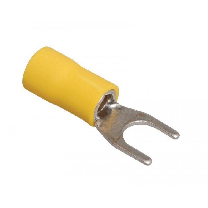 Наконечник вилочный предназначен для оконцевания опрессовкой проводов с медными жилами и используется при монтаже электрических узлов, где предусмотрено соответствующее контактное соединение на основе винтовой фиксации. Провести полный демонтаж крепежного соединения возможно, лишь ослабив винтовую фиксацию.