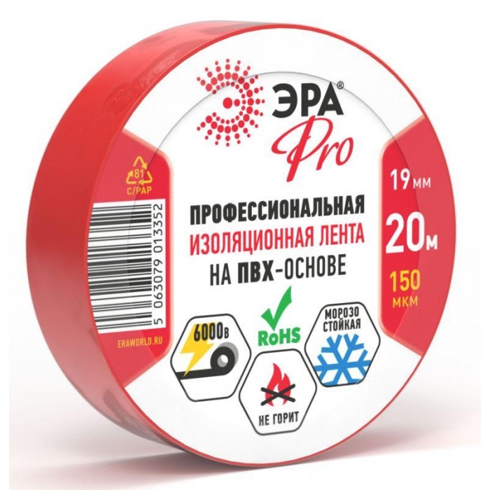 Изолента ПВХ 19ммх20м PRO150RED ПВХ 150мкм проф. красн. Эра Б0057292