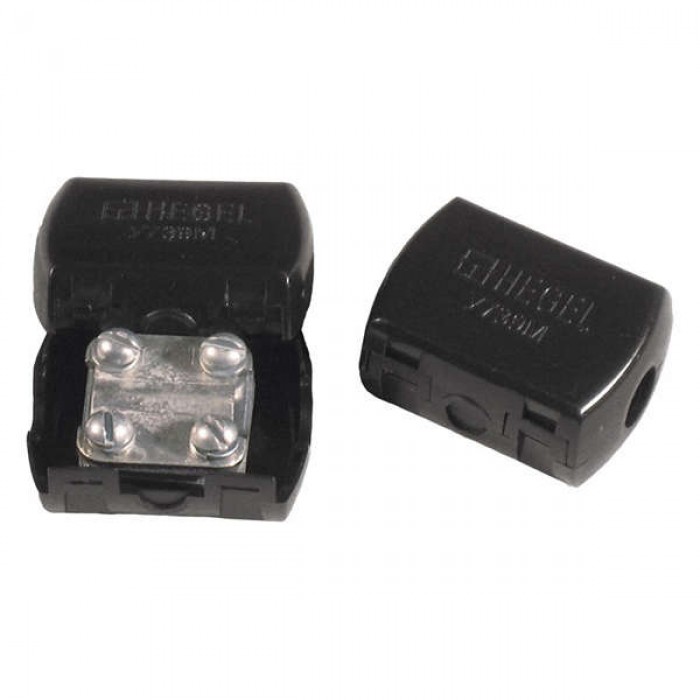 Сжим У739 M HEGEL – монтажный элемент, аксессуар. Габариты: 42 x 32 x 22 мм. Применяется при монтаже магистрального провода сечением 4-10 кв.мм и ответвительного сечением 1,5-2,5 кв.мм.