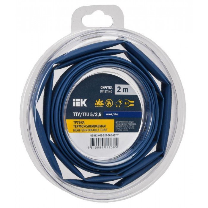 Трубка термоусадочная ТТУ нг-LS 5/2.5 син. (уп.2м) IEK UDR12-005-D25-002-K07-T