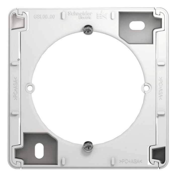 Коробка Systeme Electric (ранее Schneider Electric) серии Glossa (цвет белый) наружного монтажа. - Позволяет установить любую функцию скрытого монтажа на стену (как изделие открытого монтажа). - Выполнена из материала PС+ASA, стойкого к УФ-излучению и появлению царапин.