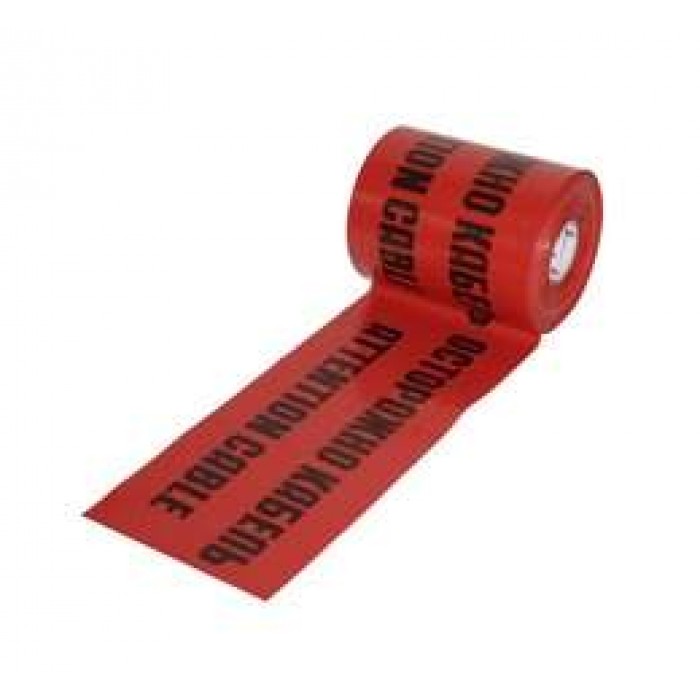 Лента сигнальная ЛСЭ-300мм (рул.100м) – аксессуар, сигнальное средство. Представляет собой ленту шириной 300 мм. Изготовлена из прочного полиэтилена со светостабилизирующими свойствами. Красного цвета, с надписью черными буквами "Осторожно кабель". Обладает высокой прочностью на растяжение и разрыв, химически стойкая к воздействию реагентов, морозоустойчивая. Благодаря раскраске заметна в условиях темного времени суток, плохой видимости, атмосферных осадков. Применяется в целях ограждения при работах с кабелем и для идентификации подземных коммуникаций. В рулоне 100 м.